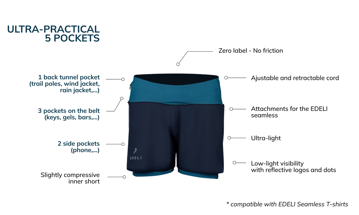 TRAIL RUNNING & RUNNING: 3-in-1 shorts with integrated shorts and belt