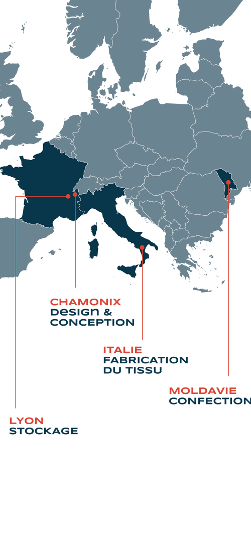 Conçu et testé dans la vallée de Chamonix, fabriqué en Europe
